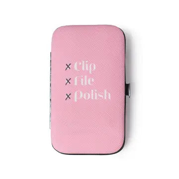 A six piece kit that's always available - no appointment necessary. Keep your nails on point with durable steel tools in a cute snap-close case. - Stainless steel tools - Snap-close organizer & travel case - 6 piece kit includes: - Cuticle trimmer - Beauty scissors - Nail clippers - Nail file - Tweezers - Cuticle pusher/scraper - 4 custom designs
