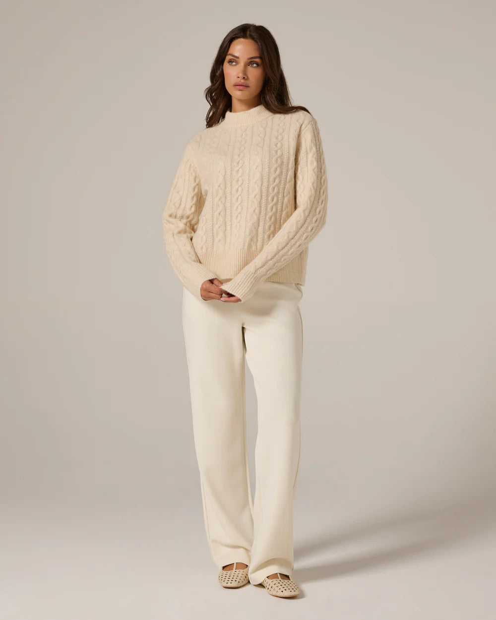 Riley Cable Knit Sweater-Cream